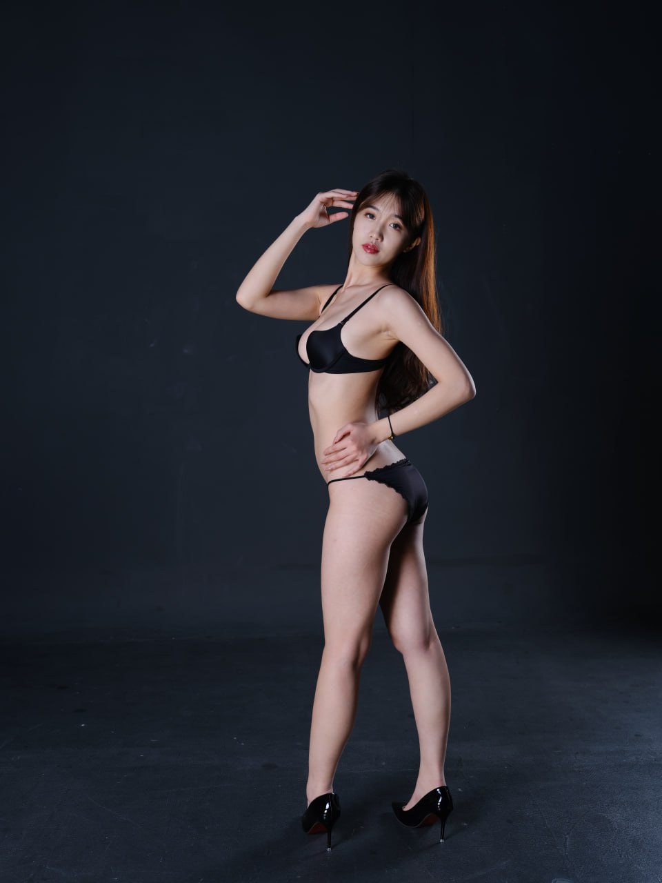 国模洛菲黑色蕾丝套装
