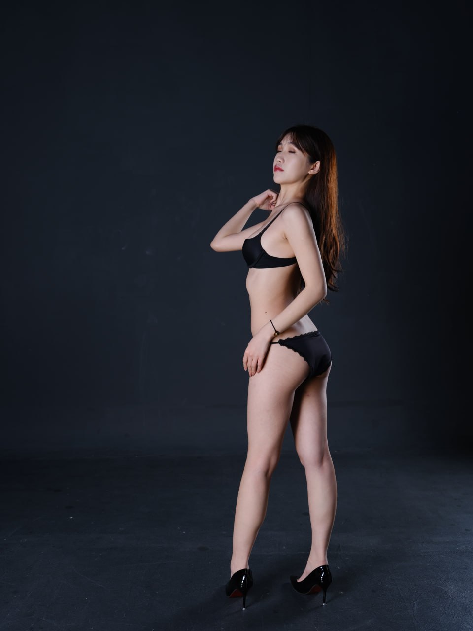国模洛菲黑色蕾丝套装