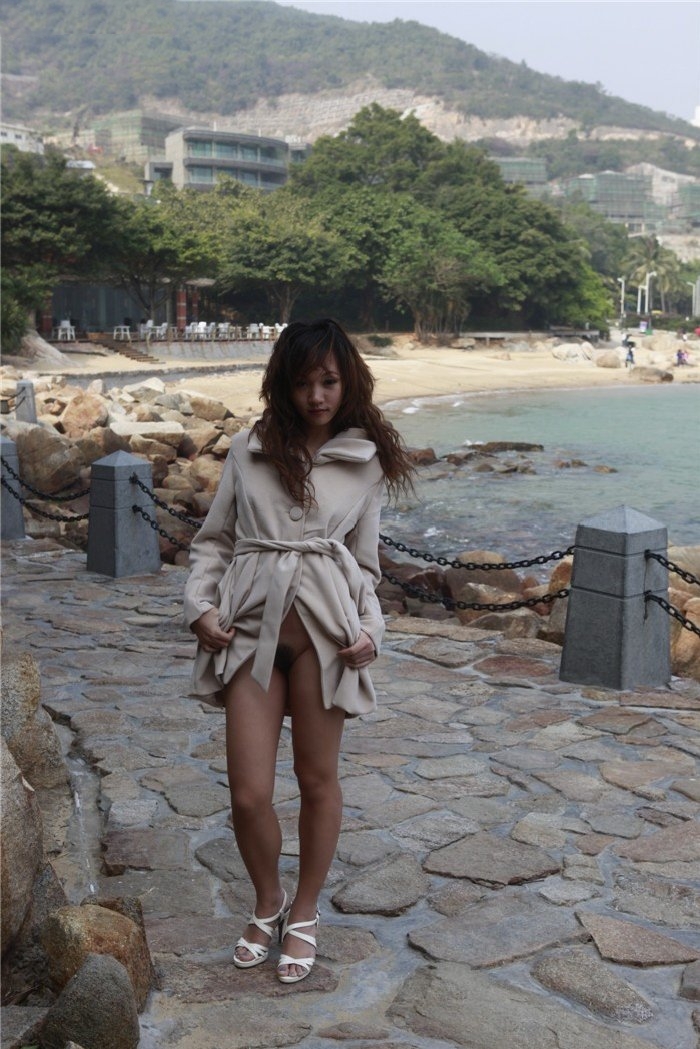 人妻海边风衣露出